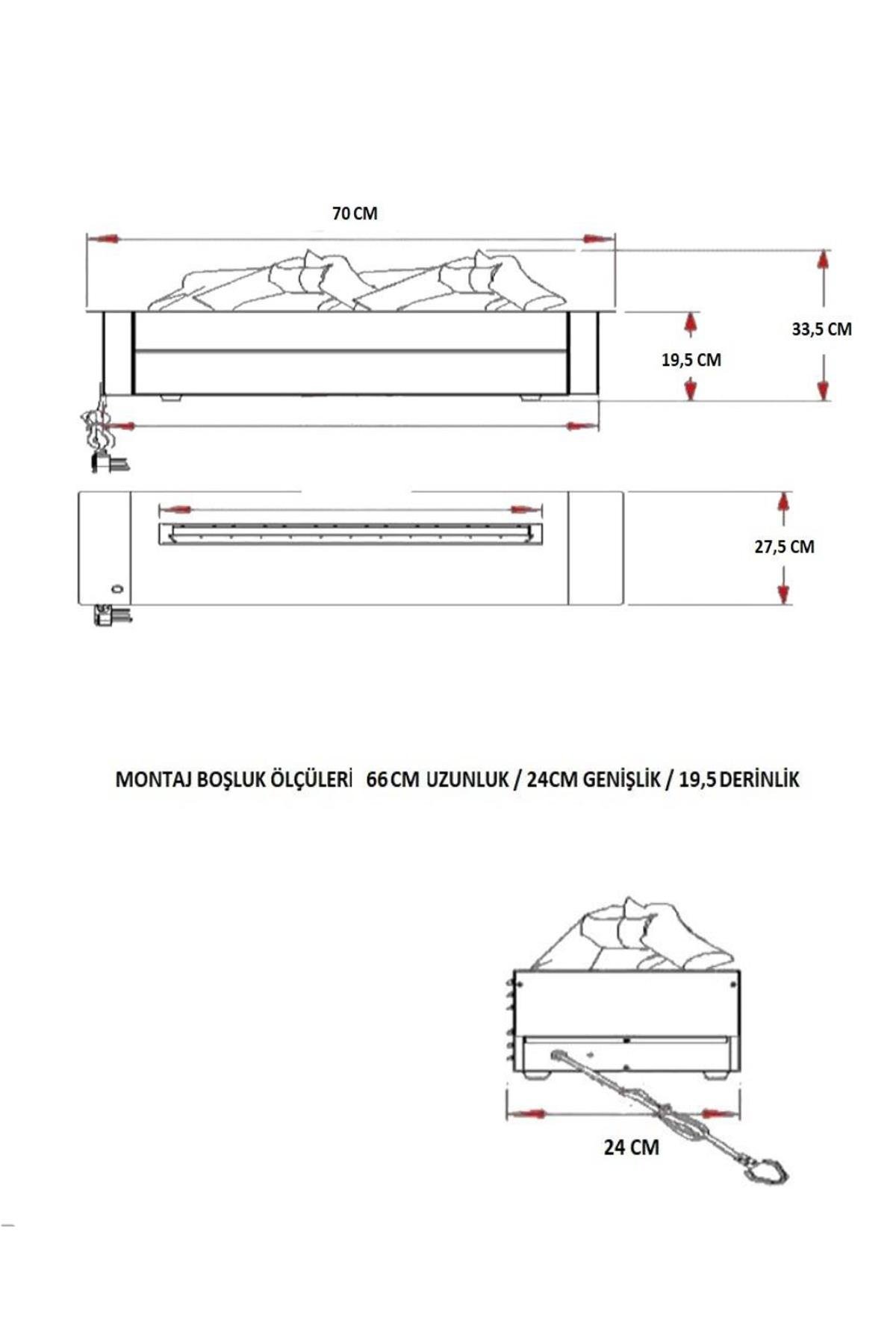 70 Cm Üç Boyutlu Elektrikli Şömine